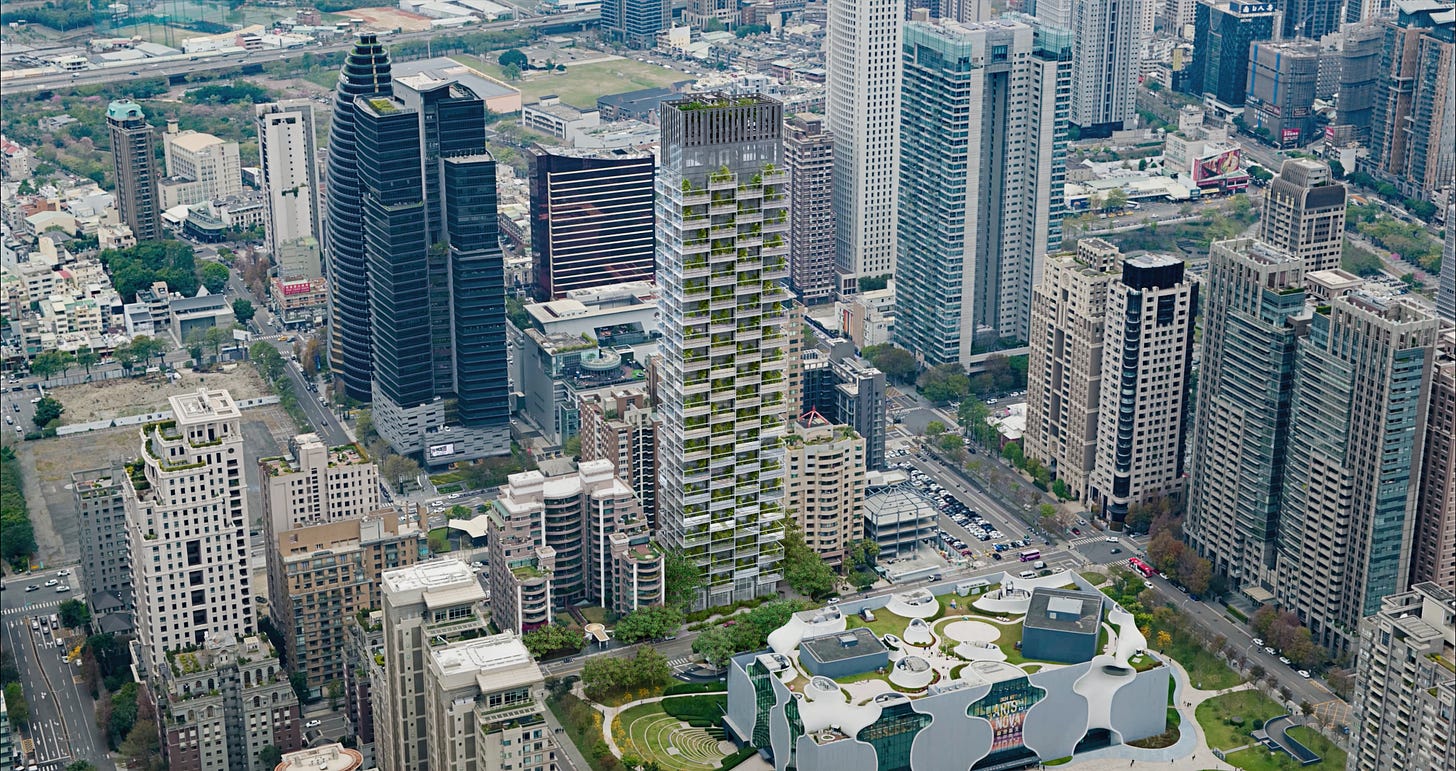 Treasure Garden, sempre presso il 7° Distretto di Taichung, è infine una slanciata torre residenziale che, grazie all’orientamento architettonico originale, si apre verso il parco adiacente, regalando agli interni eleganti delle residenze ampie viste panoramiche sulla città. L’edificio introduce una nuova presenza architettonica e urbana, ispirata alle geometrie raffinate dell’architetto e designer italiano Gio Ponti. A differenza degli edifici circostanti, non si configura come una serie di volumi impilati, ma come un insieme di superfici leggere e sottili che accolgono funzioni residenziali, spazi pubblici, terrazze e paesaggio. La facciata e gli interni del Treasure Garden si distinguono per un’eleganza geometrica e flessibile, mentre il progetto paesaggistico definisce accessi ben riconoscibili, marcati da alberature selezionate che scandiscono l’ingresso pedonale e carrabile.